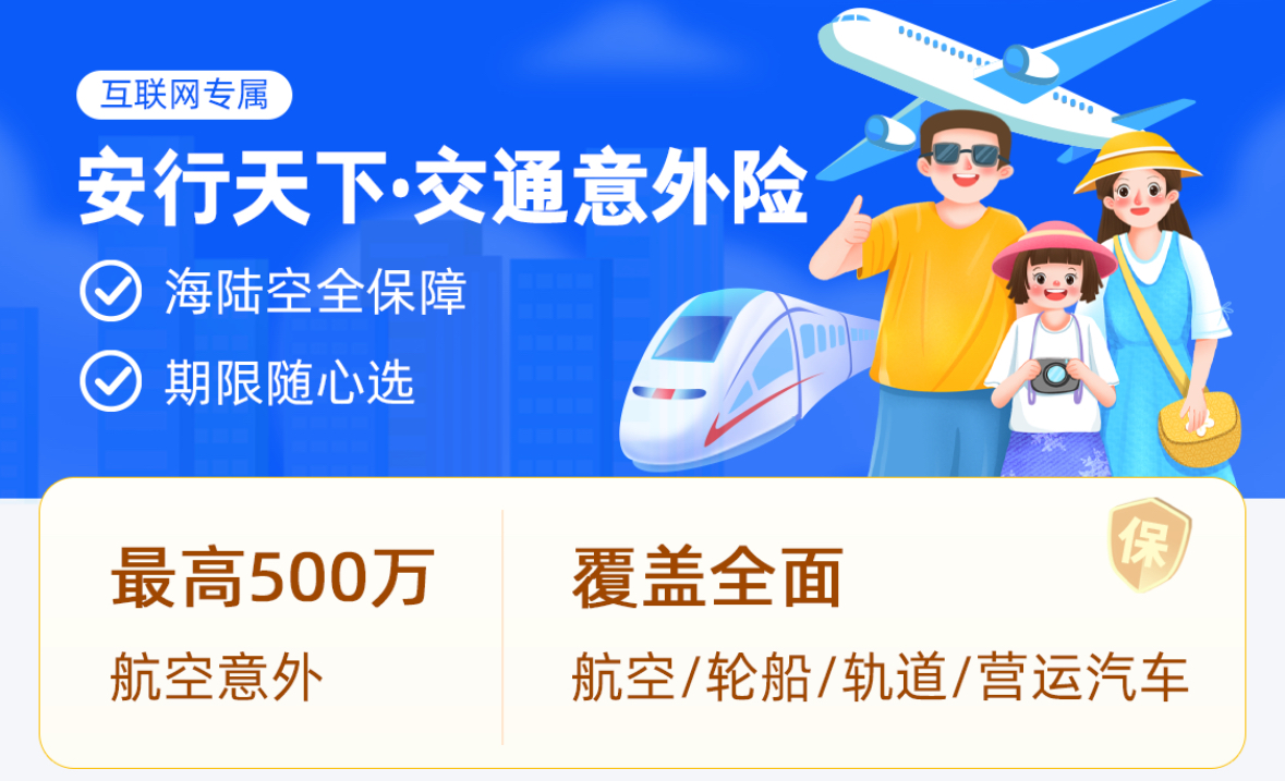 安诚保险:安行天下—交通意外险(互联网专属) 覆盖全面—航空/轮船/轨道/营运汽车